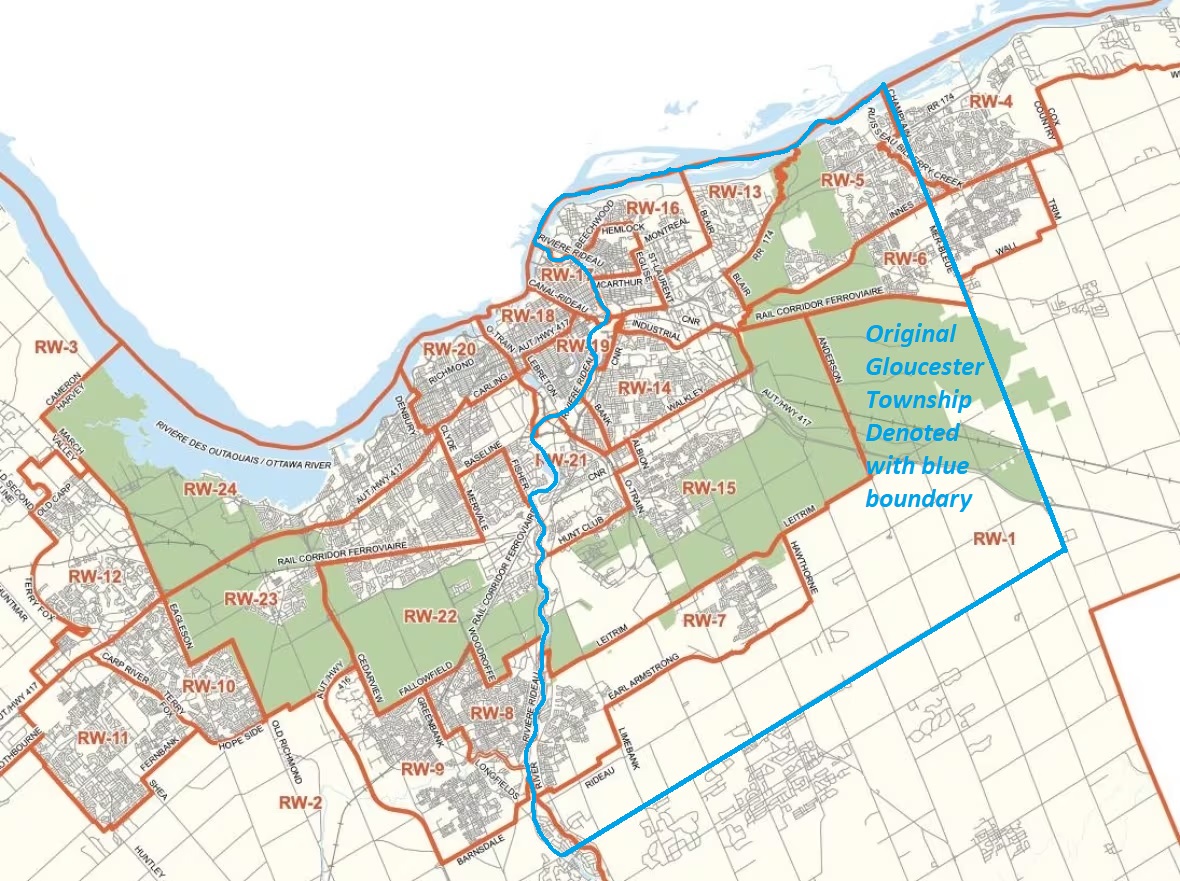 1. The Rideau River was originally the boundary between Gloucester and Nepean Townships as far north as Rideau Falls.