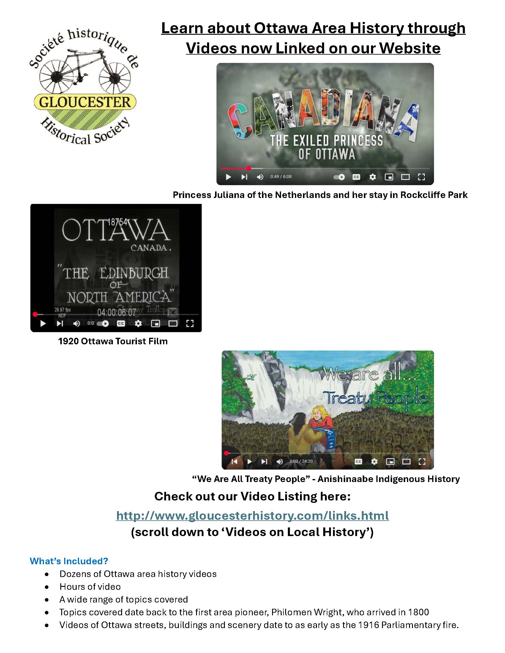 Click here to check out our list of videos on Ottawa area history (Scroll down to "Videos on Local History")