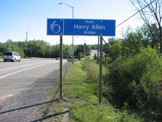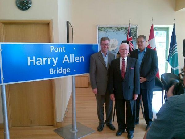 the Month - December 2012 Harry Allen was a Gloucester Councillor from 1978 until 1985, at which time he was elected mayor. He took great courage to approve a 29.4% tax increase in 1989, which allowed the City of Gloucester to come out debt at a time of high interest rates. Because of this, he received death threats and had to wear a bullet proof vest during public consultations. He was voted out of office in 1991 but his successor was able to implement a tax freeze as a result of his courageous decision. The City of Gloucester entered amalgamation with Ottawa free of debt. Before his political career, Mr. Allen was known for his community work in Beacon Hill. He got involved in community and township recreation committees that helped build the Earl Armstrong Arena and the Sawmill Creek Pool in Blossom Park as well as a number of parks. He also helped found the municipal Pineview Golf Course. When in office, he developed a strong relationship with the National Capital Commision which enabled him to have the Rockcliffe Parkway realigned at St. Joseph Boulevard. He also widened St. Joseph Boulevard and the bridge that now bears his name and was involved with the extension of the Queensway in Orléans. Mr. Allen had a passion for public transit and worked with OC Transpo to develop a more efficient transit service in Gloucester. Mr. Allen is a native of Ireland and immigrated to Canada in 1953 and came to Ottawa in 1968.. The bridge was officially named on August 24, 2012 and Mayor Jim Watson